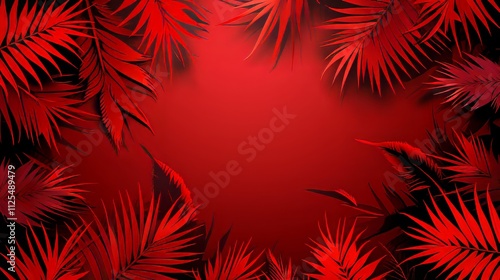 Vibrant red background featuring tropical palm leaf shadows for warm summer themed designs