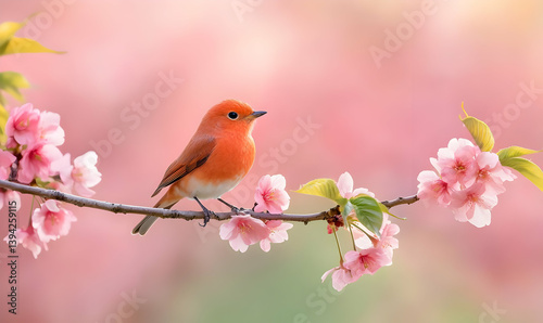 Vibrant Robin Perched on Cherry Blossom Branch in Spring Blossom