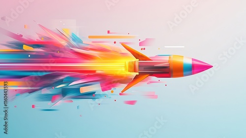 Vibrant Rocket Illustration: Dynamically Launching Through Abstract Color Space. AI Generated