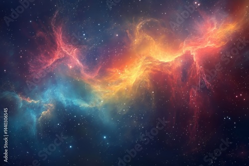 Vibrant space nebula with stars. Colorful cosmic cloudscape in deep space. Concept of universe, galaxy, and astronomy.