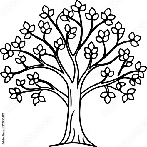 Vibrant Spring Tree and Whimsical Tendrils - Vector Illustration