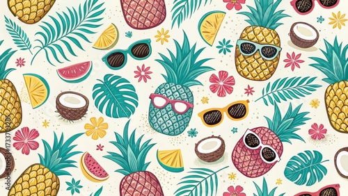 Vibrant summer vibes with pineapples, coconuts and tropical leaves, perfect for adding a fun, fresh feel to your project and evoke happy beach days