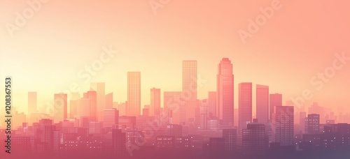 Vibrant sunset urban skyline with modern skyscrapers in soft pastel colors