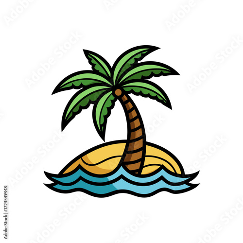 Vibrant tropical island palm tree and ocean wave vector illustration scalable graphic