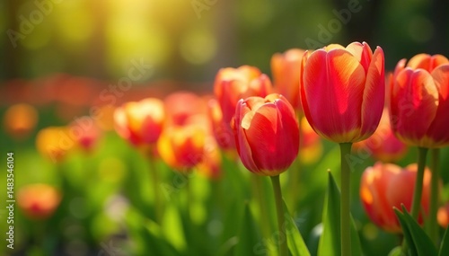 Vibrant tulips blooming in a lush spring garden , botany, macro, insects