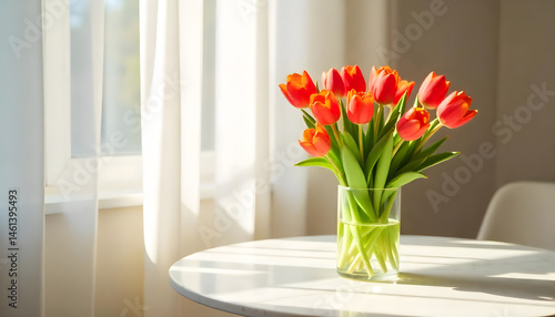 Vibrant tulips bouquet sunlight interior