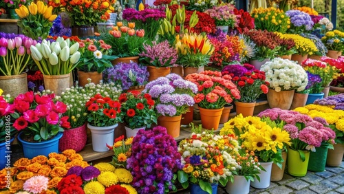 Vibrant variety of colorful flowers for sale at the market, colorful, vibrant, flowers, market, bouquet, display, fresh