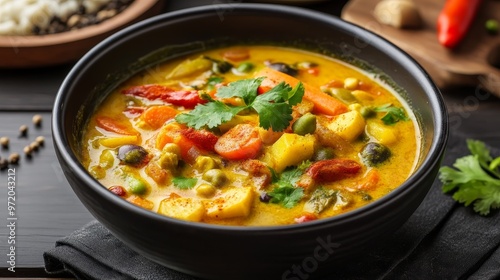 Vibrant Vegetarian Curry Bursting with Aromatic Spices - Healthy and Flavorful Plant-Based Meal