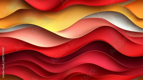 Vibrant waves of red, gold, and white in fluid abstract design