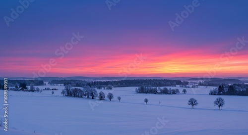 Vibrant Winter Twilight Paints the Sky Pink and Purple Over a Serene, Snowy Expanse.