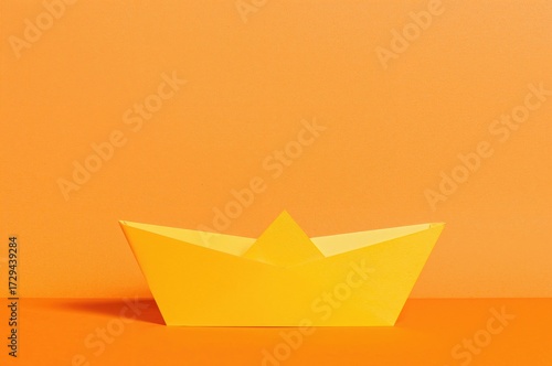 Vibrant yellow paper boat featuring a growth portfolio icon set on a bold orange paper backdrop. Business expansion portfolio idea with generous space for text.