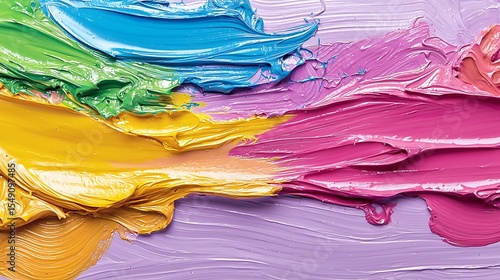 Vibrant yellow pink blue and green oil paint strokes on a lilac background Abstract art texture
