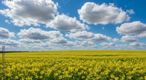 Vibrant Yellow Rapeseed Field Under a Sunny Sky