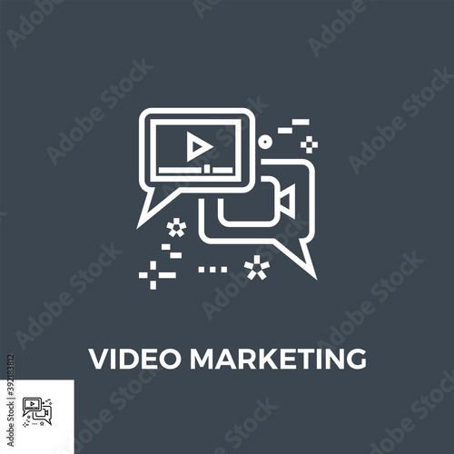Video Marketing Related Vector Thin Line Icon. Isolated on Black Background. Vector Illustration.