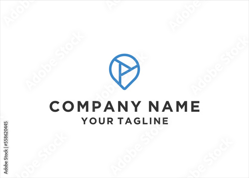 Video Play Music Logo, Pin Map Location Icon Logo Design Template Element