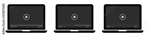 Video player on laptop screen template icon. Multimedia player template icon, vector illustration