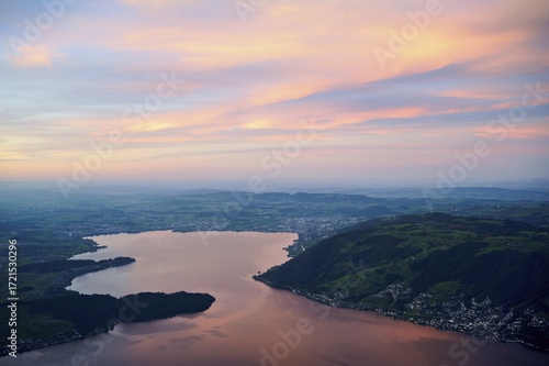 View from Rigi Kulm to Lake Zug and the Kiemen, Walchwil, Canton Zug, Switzerland