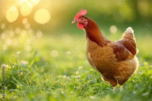 View from side body of a Orpington chicken standing on grass, Awe-inspiring, Full body shot ::2 Side Angle View