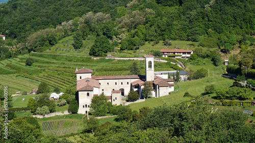 View of Astino Abbey and the Church of Santo Sepulchro, Monastero di Astino e Chiesa del Santo Sepolcro, Bergamo, Italy