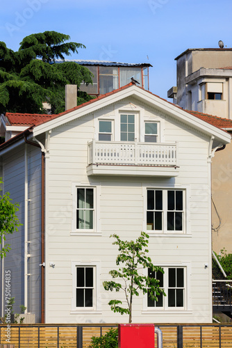 View of buildings and houses in public places in Turkey, sunny summer day