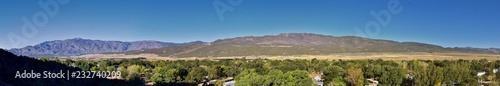 View of Kanarraville valley and mountain range from hiking trail to Waterfalls in Kanarra Creek Canyon by Zion National Park, Utah, USA.