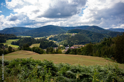 View of natural green low mountain range landscapes of the Black Forest in summer