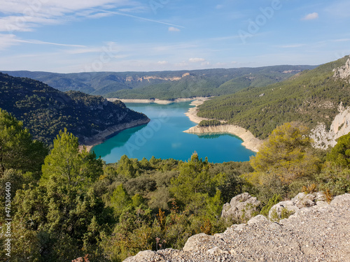 View of Noguera river from Pertusa Hermitage in Montsec Range. Picture of spanish Pyrenees