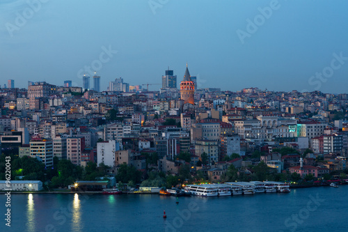 View of the passage the Gold Horn, Beyoglu's region and Galata Tower in sunset