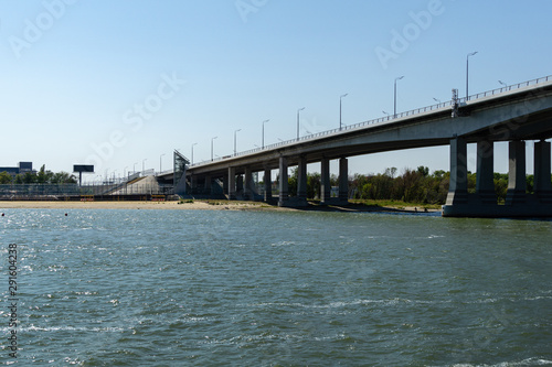 View of Voroshilovsky bridge on Don river from right bank Rostov-on-Don city