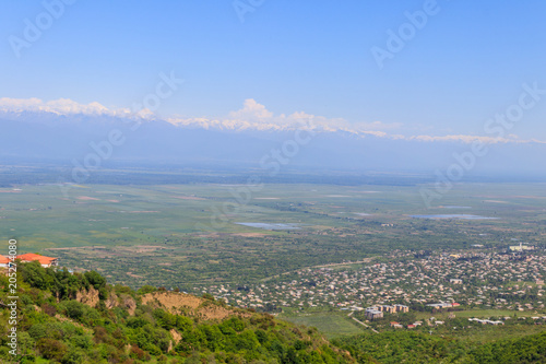 View on Alazani valley and Caucasus mountains from Sighnaghi, Kakheti, Georgia