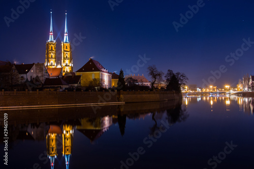 View on The Cathedral of St. John the Baptist in Wrocaw at night. Poland