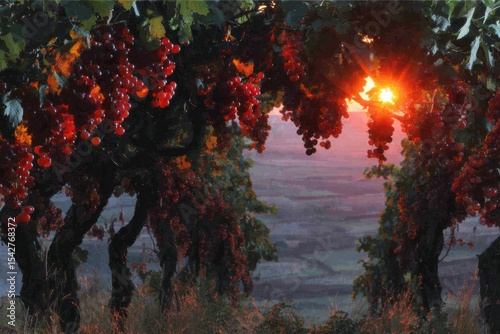 Vineyard sunset panorama