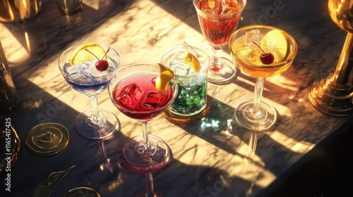 Vintage bar table with cocktails and muted golden accents