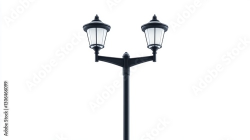 Vintage black lamp post against white background, urban streetlight decoration concept