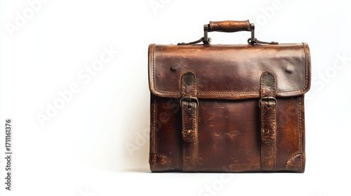 Vintage Brown Leather Briefcase on White Background for Work Use