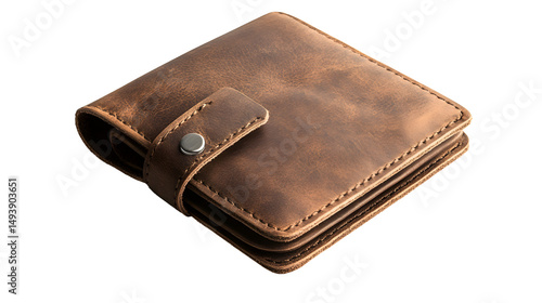 Vintage Brown Leather Wallet with Snap Button Closure