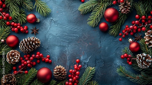 Vintage Christmas Decorative Background with Top View and Copy Space