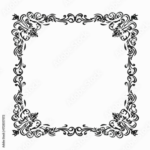 Vintage Decorative Floral Swirl Square Ornament Frame Border Illustration
