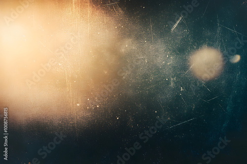 Vintage distressed old photo light leaks, film grain, dust and scratches texture overlay with vignette border. Dirty grunge analog 8k widescreen retro effect background with copy space