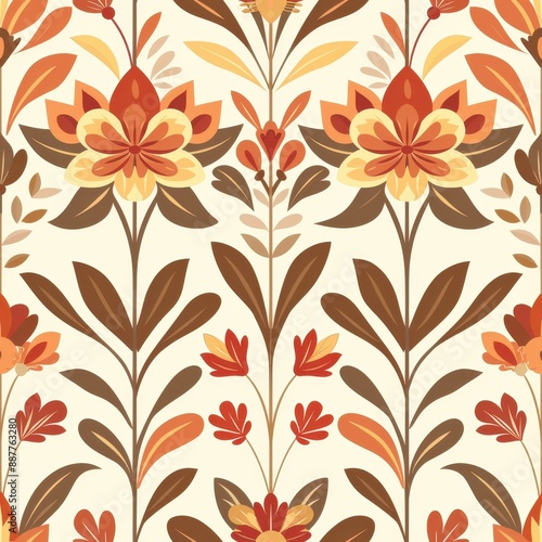 Vintage Floral Pattern With Orange and Brown Hues