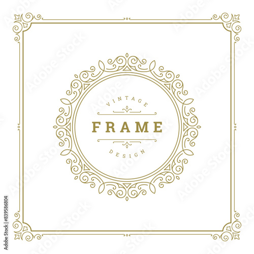 Vintage flourishes ornament swirls lines frame template vector illustration.