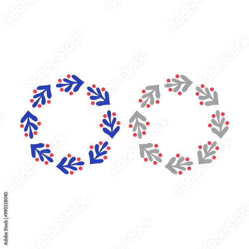 VINTAGE HERBAL CHRISTMAS WREATH DESIGN ELEMENTS ISOLATED ON WHITE
