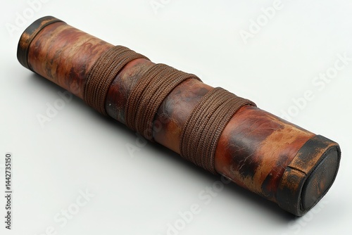 Vintage leather scroll case with cord wrap antique container for maps, documents, and art