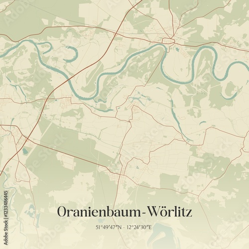 Vintage map of Oranienbaum-Worlitz, Germany.