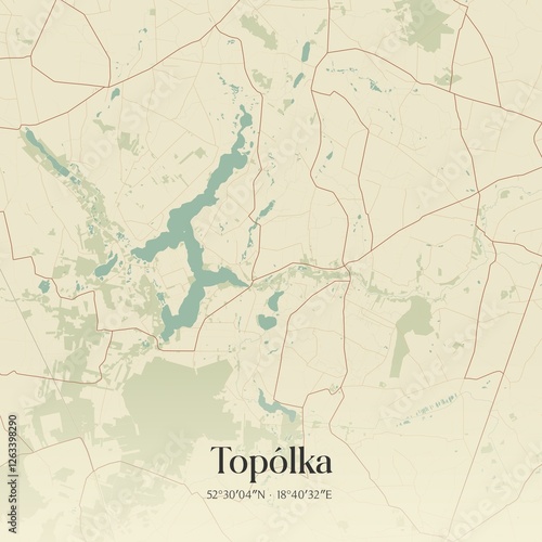 Vintage map of Topólka, Poland.