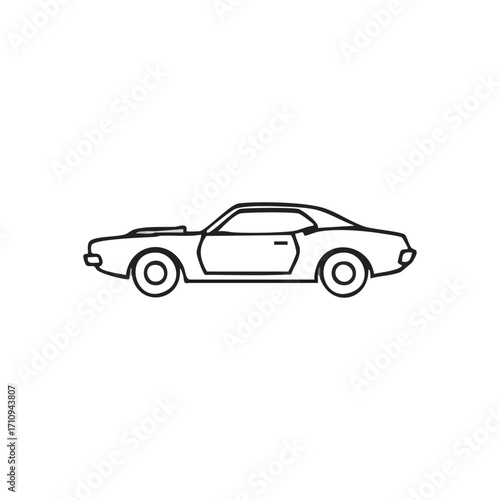 Vintage Muscle Car Line Drawing Icon. A sleek contour sketch of a powerful classic automobile, symbolizing speed, freedom, and nostalgia for the golden era of motoring.
