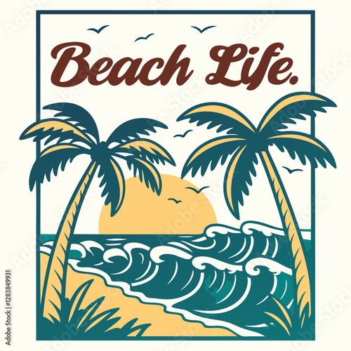 Vintage Ocean Wave & Palm Trees – Retro Summer Design