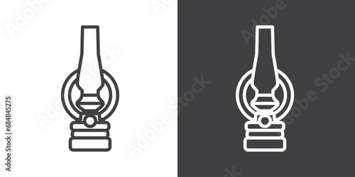 Vintage Oil lamp icon, Camping lantern simple line icon vector illustration, Classic lamp logo icon design, Vector illustation of classic lamp isolated on black and white background.
