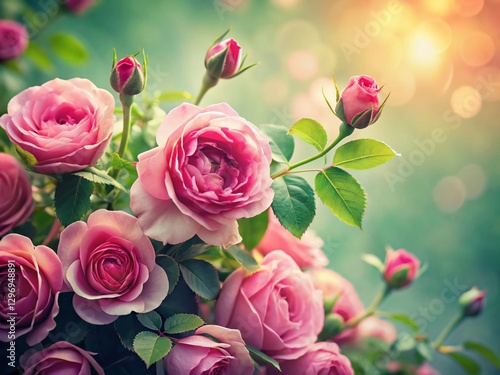 Vintage Pink Roses Bouquet, Soft Gradient Background, Floral Still Life Photography