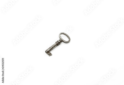 Vintage silver key on white background